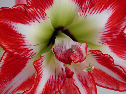 I bought this amaryllis as a bulb (already with sprouts on it) around the first of December. It bloomed on Christmas Eve, perfect timing. Not sure which variety this is, but it turned out lovely.